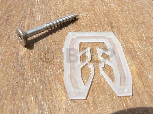 Jeder Keil hat einen inneren Kamm (oder eine Gabel), der es ermöglicht, den Keil oder einen Clusterkeil auf eine Schraube zu klemmen. Es ist möglich, Schrauben, Bodenzüge oder Gewindestangen mit einem Durchmesser von 3 bis 9 mm effektiv zu befestigen. Dadurch wird sichergestellt, dass der Keil auch bei Bewegung in seiner Halterung bleibt. Die Hälfte der Keilen hat eine kleine Lasche, mit der Sie sie einsetzen und unter einem begrenzten Raum, z.B. unter einem Balken, leicht verschieben können.