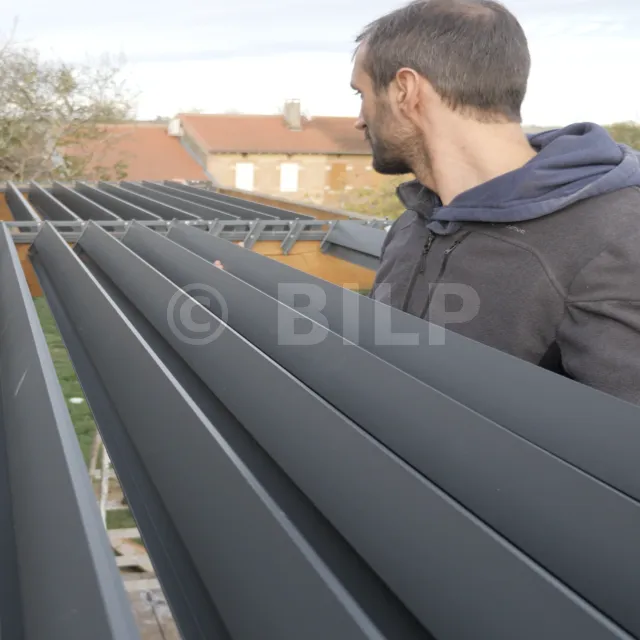 Dank ihres innovativen Designs sind diese Aluminiumlamellen die ideale Lösung für alle Ihre Anforderungen an die Abdichtung: Essen im Freien bei Regen, Schutz von Möbeln, Schutz einer Außenküche usw.