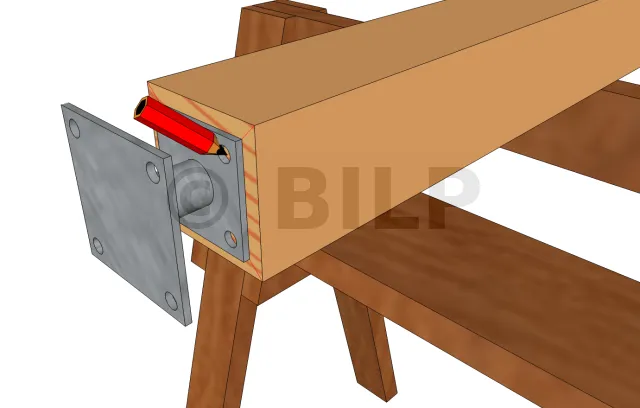 5. Legen Sie den Balken im Balkenschuh vor und befestigen Sie ihn.