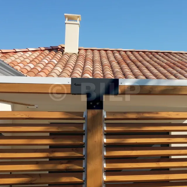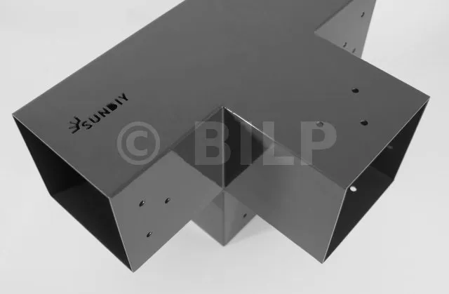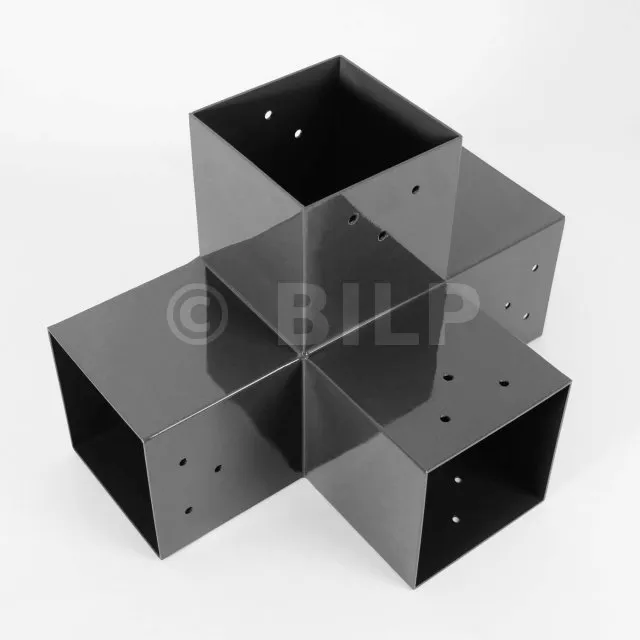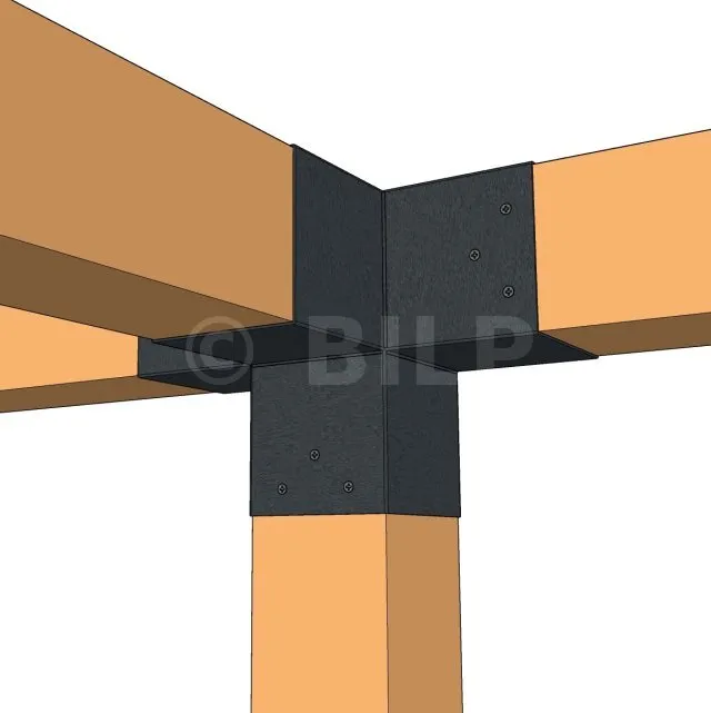 Damit können Sie einen 90 x 90 mm großen Balken senkrecht mit einem 90 x 90 mm großen Sparren verbinden, wobei das Ganze von einem 90 x 90 mm großen vertikalen Pfosten getragen wird.