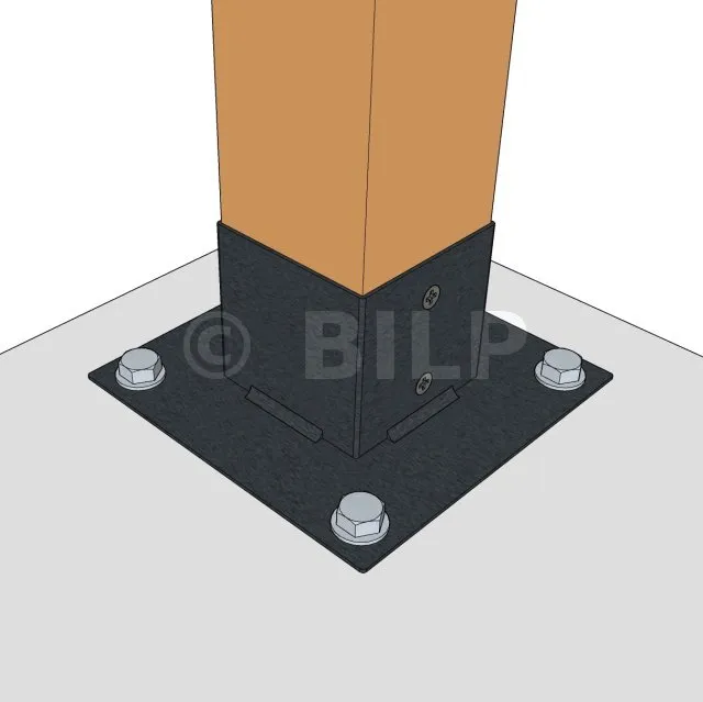 Dadurch können die Pfosten auf einer Platte oder Betonplatte befestigt werden.