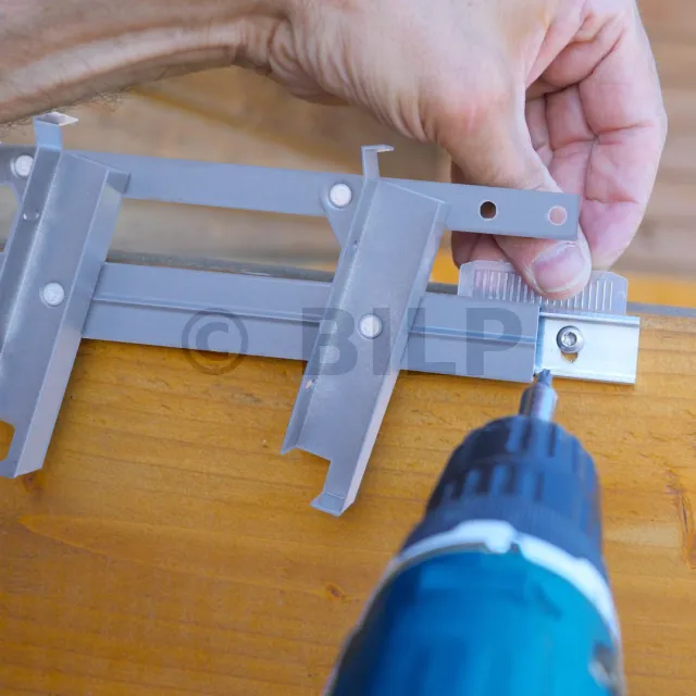 Abstand zwischen den Stützen: Unter der Annahme, dass der Mechanismus zwischen zwei Balken befestigt ist, muss der Abstand zwischen diesen beiden Balken gleich der Länge der Lamellen + 35 mm sein: 2 x 15 mm (Breite des Mechanismuskörpers) + 5 mm Spiel.