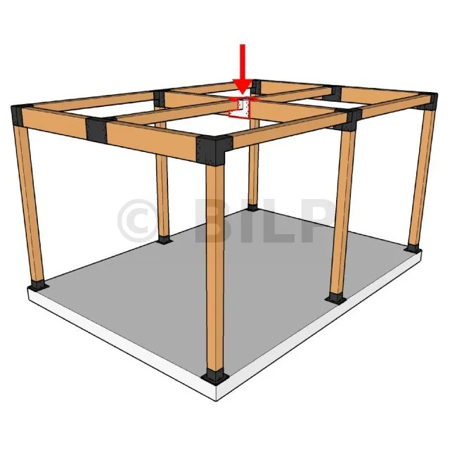Es ermöglicht die senkrechte Verbindung von zwei 120 x 120 mm großen Balken zu einem großen 240 x 120 mm großen Balken, OHNE dass sie von einem vertikalen Pfosten getragen werden.