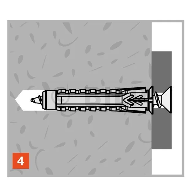 - Flexibles Nylon: Der Dübel kann von Hand positioniert werden und das Einschraubdrehmoment wird reduziert.