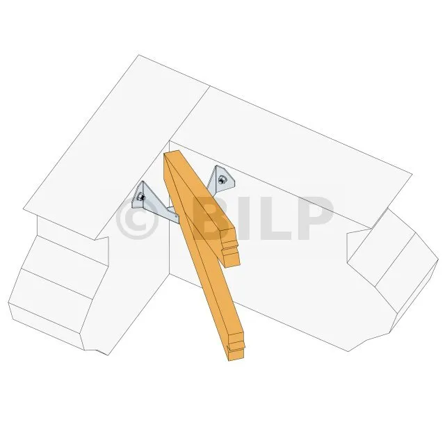 Dieser Balkenschuh ermöglicht die Aufnahme von Dachbindern in gemauerten Ecken mit einem Winkel von 90°. Er ist in der Breite wahlweise zwischen 76 und 150 mm faltbar und in der Breite 38 mm erhältlich.