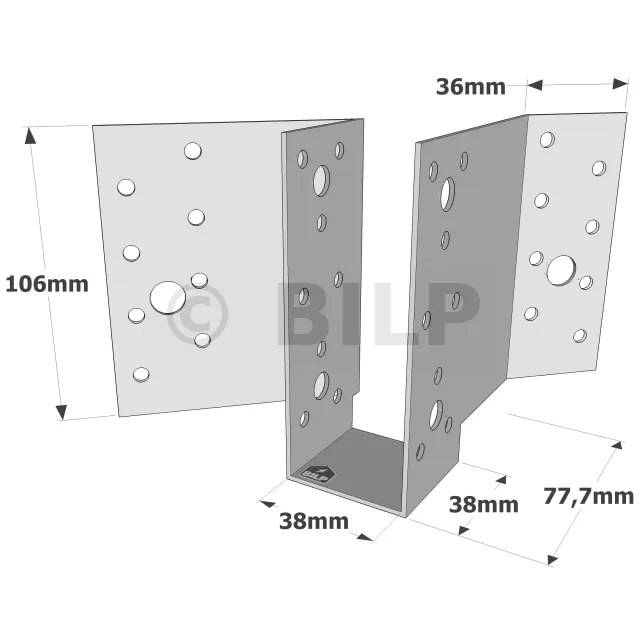 Diese Holzbalkenschuhe wurden entwickelt, um den vielen Fällen gerecht zu werden, die im Dachstuhl auftreten, wenn ein 45°-Winkel erforderlich ist. Sie werden in der Regel für horizontale Anwendungen verwendet, können aber auch für andere Zwecke angepasst werden.
