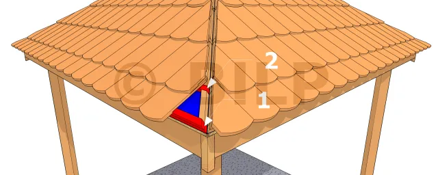 Après calepinage, dans le cas où la longueur du rampant n’est pas un multiple du pureau, utiliser des tuiles courtes pour rétablir le nombre de rangées de tuiles.