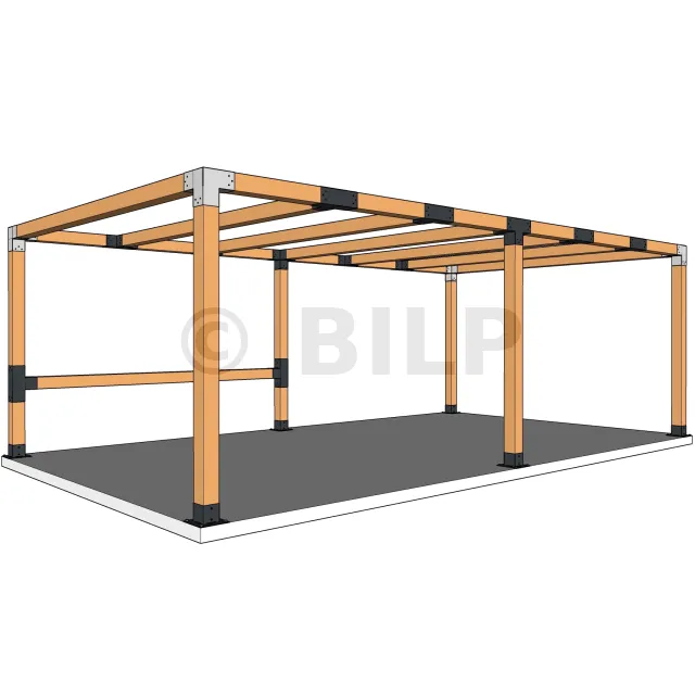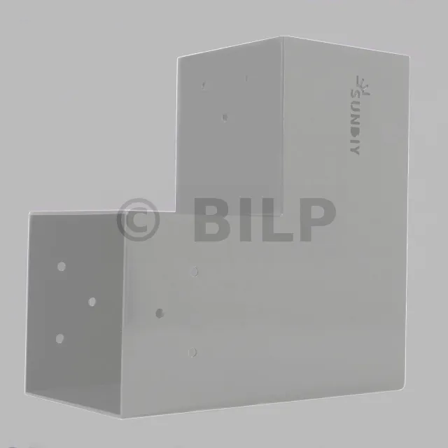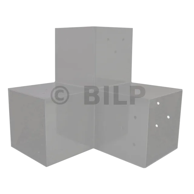 Es wird in einer Außenecke verwendet. Mit diesem Verbinder können Sie einen großen 120 x 120 mm großen Balken senkrecht mit einem 120 x 120 mm großen Balken verbinden, wobei das Ganze von einem 120 x 120 mm großen vertikalen Pfosten getragen wird.
