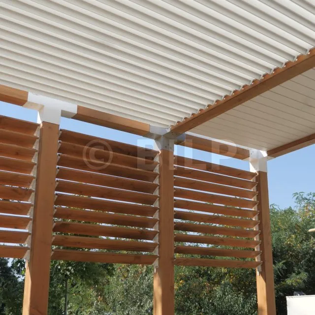 Damit kann eine 120x120mm-Stütze senkrecht zu einem 120x120mm-Chevron angebracht werden, die insgesamt von einem 120x120mm-Vertikaltopf unterstützt wird.