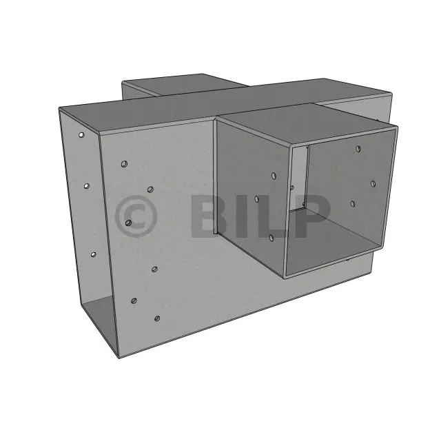 Es ermöglicht die senkrechte Verbindung von zwei 120 x 120 mm großen Balken zu einem großen 240 x 120 mm großen Balken, OHNE dass sie von einem vertikalen Pfosten getragen werden.