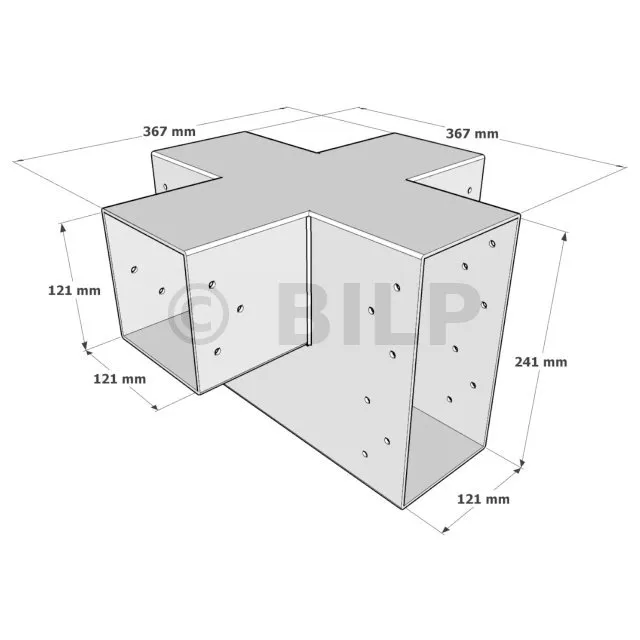 Es ermöglicht die senkrechte Verbindung von zwei 120 x 120 mm großen Balken zu einem großen 240 x 120 mm großen Balken, OHNE dass sie von einem vertikalen Pfosten getragen werden.