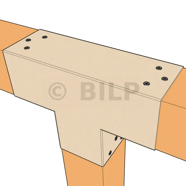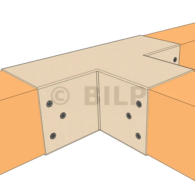 Es wird verwendet, um einen 90x90-mm-Träger senkrecht mit einem anderen 90x90-mm-Träger zu verbinden, OHNE dass er von einem vertikalen Pfosten getragen wird.