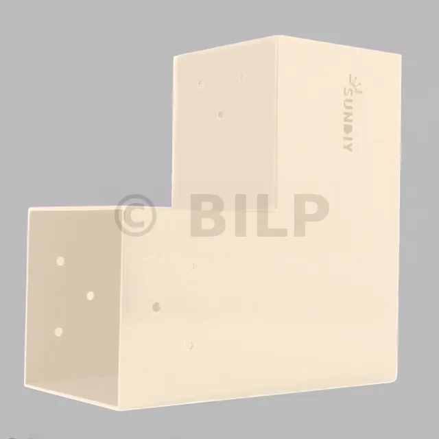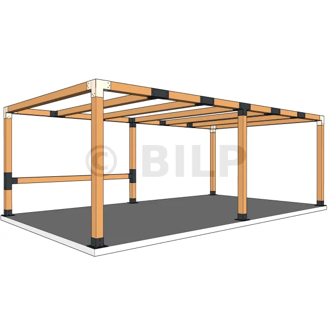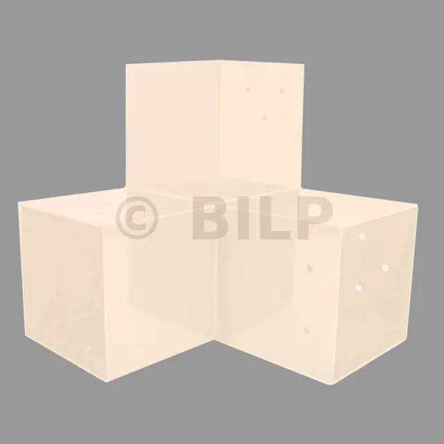 Es wird in einer Außenecke verwendet. Mit diesem Verbinder können Sie einen großen 120 x 120 mm großen Balken senkrecht mit einem 120 x 120 mm großen Balken verbinden, wobei das Ganze von einem 120 x 120 mm großen vertikalen Pfosten getragen wird.
