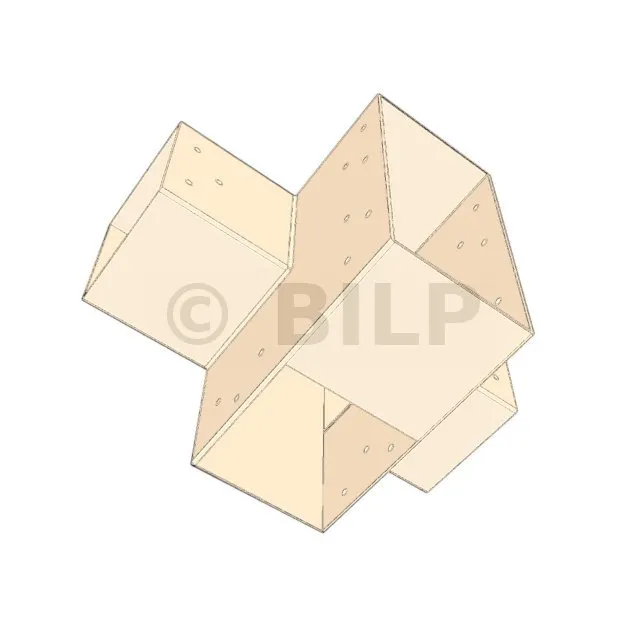 Es ermöglicht die senkrechte Verbindung von zwei 120 x 120 mm großen Balken zu einem großen 240 x 120 mm großen Balken, wobei das Ganze von einem 120 x 120 mm großen vertikalen Pfosten getragen wird.