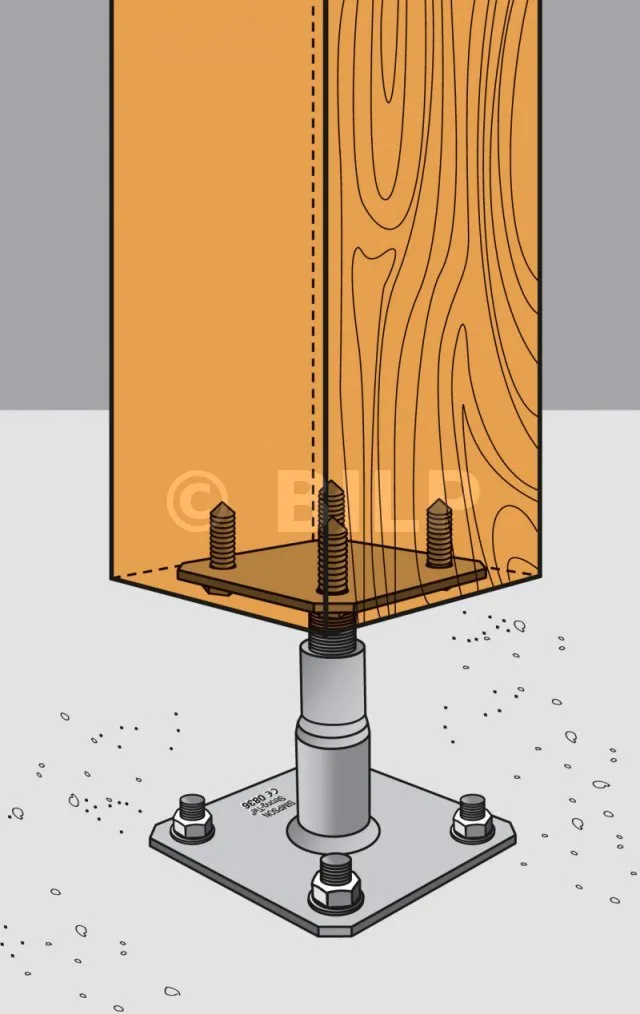 - Befestigung von Holzelementen (Sparren, Balken, Pfosten usw.) an Metallplatten.