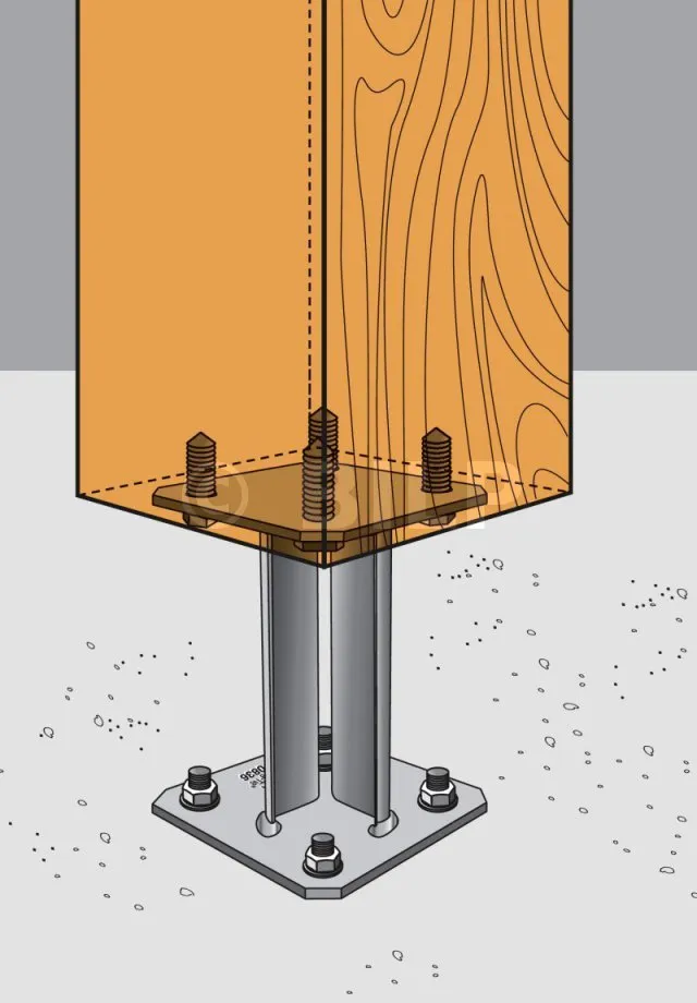- Befestigung von Holzelementen (Sparren, Balken, Pfosten usw.) an Metallplatten.