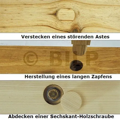 Zum Verdecken von Schrauben- oder Sechskantkopf Gewindeschneidschrauben, entfernen Sie einen unschönen Ästen,