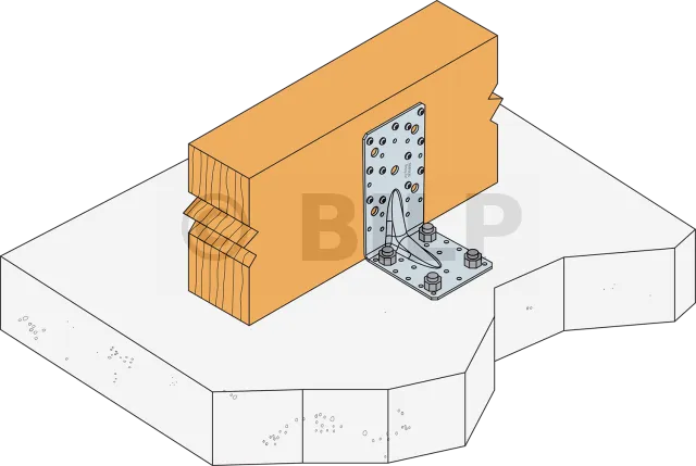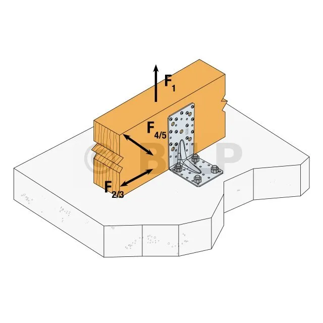 Der Bemessungswiderstandswert der Schraube R#,d wird durch (Schraubenkoeffizient x Bemessungslast des Verbinders F#,d) für die Kraftrichtung und die entsprechenden Befestigungselemente bestimmt. Geeignete Anker finden Sie im Simpson Strong-Tie-Ankersortiment. Die klassischen Lösungen sind BOAXII, SET-XP, WA, AT-HP, je nach Betonart, Abständen und Randabständen.