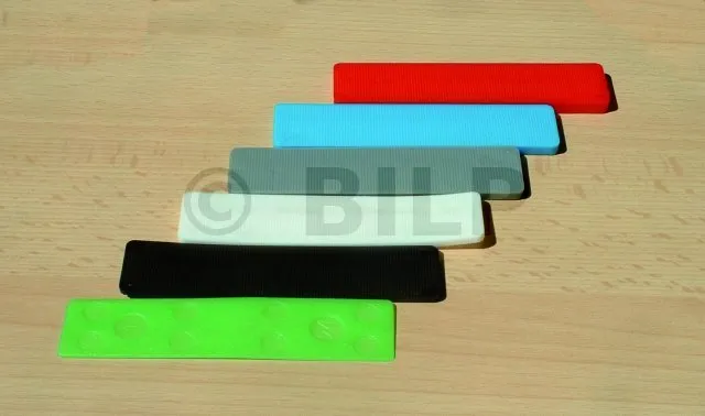Kunststoff-Flachkeile, die für die Installation in allen Gewerken der Ausbauarbeiten, Verglasungen, Beschläge usw. unerlässlich sind.