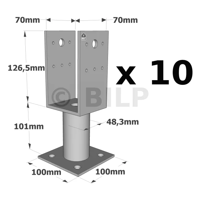 U-Pfostenträger mit Platte - Réf. PPUP70_10