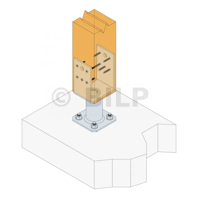 ** Beziehen Sie sich auf das Simpson Strong-Tie Verankerungssortiment, um die richtige Verankerung auszuwählen. Standardlösungen sind BOAXII, SET-XP, WA, AT-HP, die je nach Betonart, Achsabstand und Randabständen ausgewählt werden sollten.
