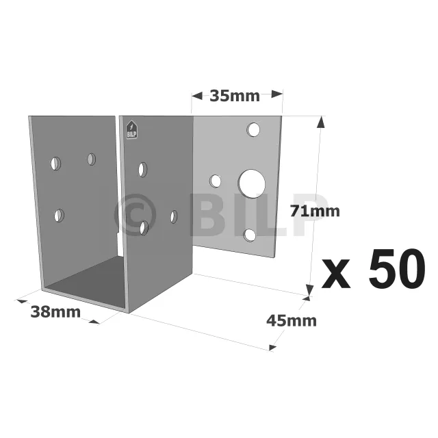 Balkenschuhe mit außenliegenden Schenkeln, MF-Sortiment, für MF-Mini-Pfettenanker - Réf. MF180/38/1.5_50