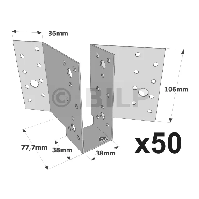 Diese Holzbalkenschuhe wurden entwickelt, um den vielen Fällen gerecht zu werden, die im Dachstuhl auftreten, wenn ein 45°-Winkel erforderlich ist. Sie werden in der Regel für horizontale Anwendungen verwendet, können aber auch für andere Zwecke angepasst werden.