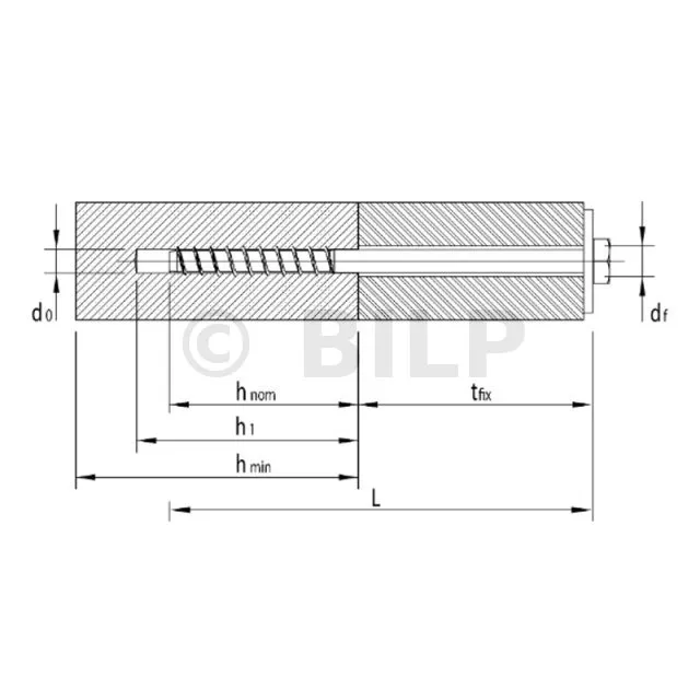 - Nominale Verankerungstiefe, hnom190mm
