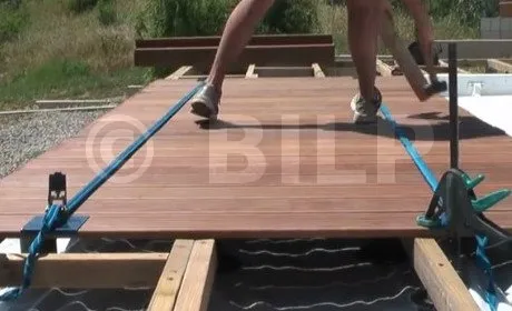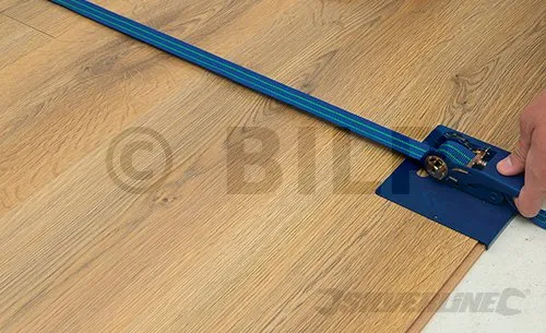 Erleichtert die Montage der Dielen, ermöglicht das Richten von verformten Dielen. Gebogene Kante für einen festen Halt, Präzisions-Zahnstangenmechanismus, 5 m langer, nicht verformbarer Polypropylen-Flansch. Spanndruck von 100 kg