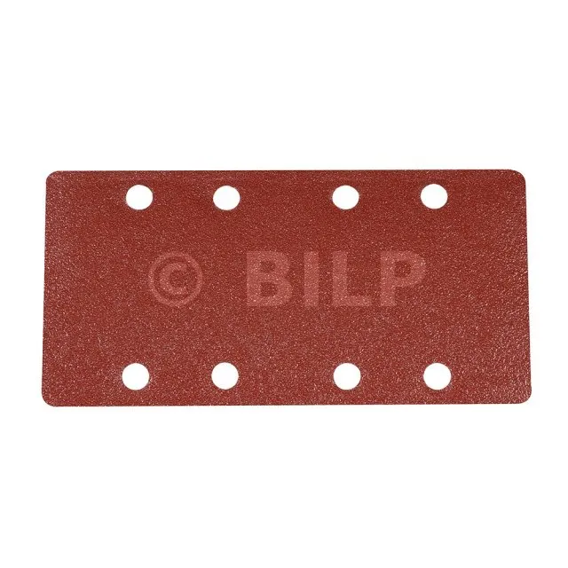 Korund. Vorgestanzt für Schleifmaschinen mit 93 x 190-mm-Schleifblättern. Kletthaftung erlaubt schnelle Schleifblattwechsel.