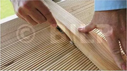 Professionelle Lösung zur unsichtbaren Befestigung von Terrassendielen an Balken.
