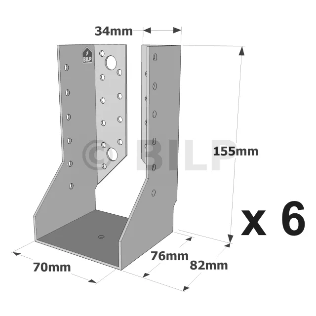 Zwischen der Dicke des Holzes und der Breite des Balkenschuhs ist eine Toleranz von maximal 2 mm zulässig. Beispiel : Ein auf 76 mm gebogener Balkenschuh kann eine Holzstärke von 74 mm tragen.
