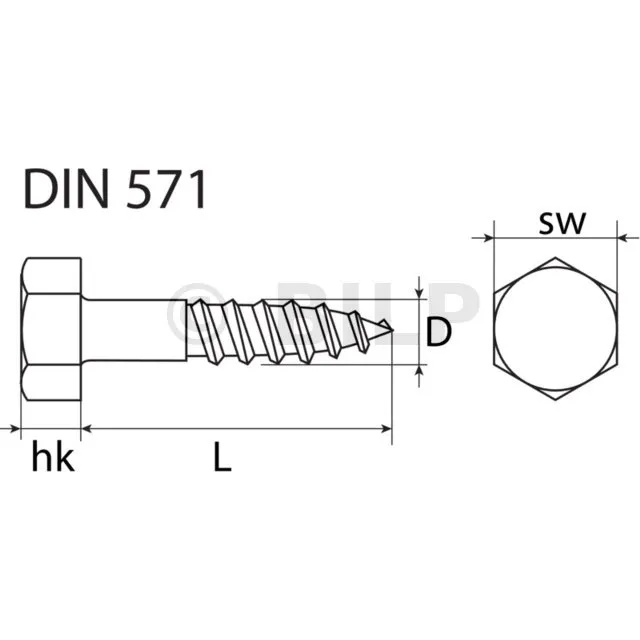DIN 571 ist eine deutsche Norm für eine Sechskant-Holzschraube. DIN-Schrauben (Deutsches Institut für Normung) sind technische Standards, die in Deutschland und international für ihre Präzision und Qualität anerkannt sind.