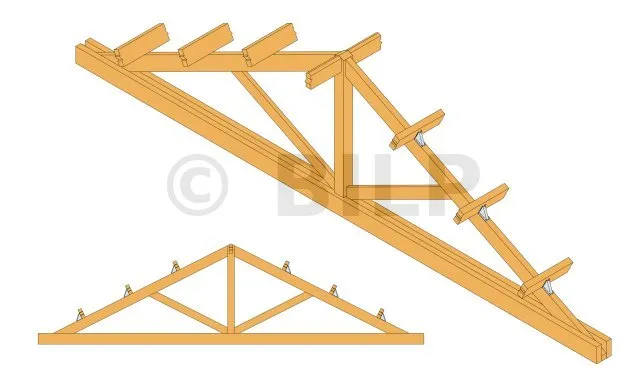 Getragen: Massivholz, Verbundholz, Brettschichtholz, Dreiecksbinder.