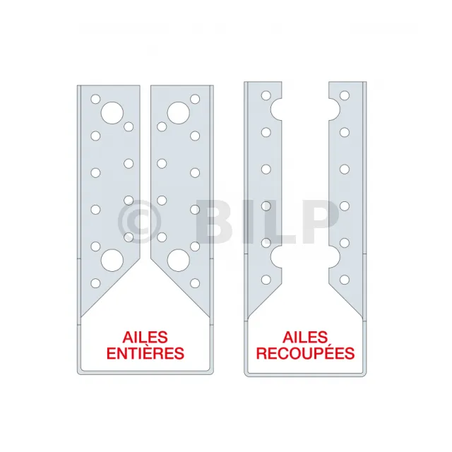 Der SAI-Balkenschuh mit innenliegenden Schenkeln ist eine Variante des Balkenschuhes mit außenliegenden Schenkeln, die eine größere Diskretion bei der Montage ermöglicht. Sie wird für besondere Fälle wie Eckverbindungen verwendet.
