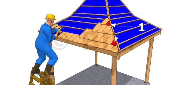 Poser en premier la rive droite. Cette rive va de l’égout jusqu’au faîtage. Puis, poser en fil verticale la première rangée. Depuis l’égout vers le faîtage.