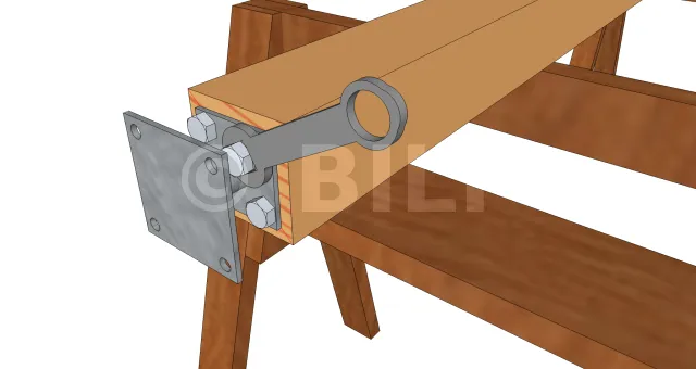 4. Legen Sie den Balkenschuh vor und befestigen Sie ihn mit Ankerbolzen an dem Hauptträger,