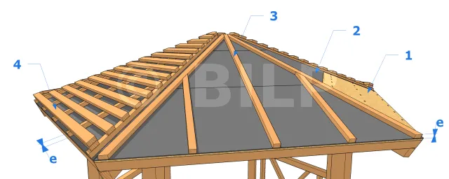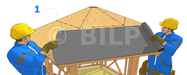 - (1) Ecran pare-pluie (film bitumeux)