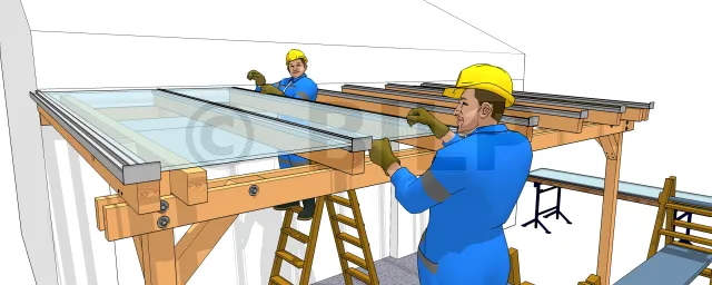 Charakteristische Merkmale - Holzbalken auf starrer Unterkonstruktion - Neigung zwischen 0° und 15°