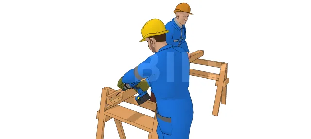 1. Zuschneiden des Holzstücks im gewünschten Winkel, dann mit Hilfe eines Winkelverbinders anbringen.