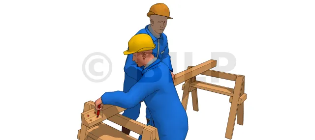 - Fixer les 2 solives internes sur la solive externe en joignant fermement les aboutages ainsi que les solives intermédiaires.