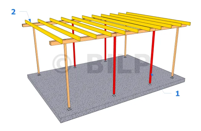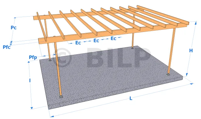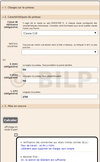 L’outil en ligne donne un résultat pour un poteau de 50 x 50 mm. Sauf qu’en pratique, il n’est pas possible de fixer une panne de 50 mm de large avec une hauteur de 175 mm sur un poteau de 50 mm et même visuellement pas bon. On utilisera alors un poteau de 80 x 80 mm au minimum.
