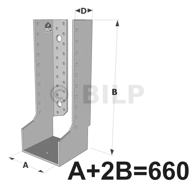 Große Balkenschuhe mit innenliegenden Schenkeln, Baureihe GLI ECONOMIC (Größe 660mm, Dicke 4mm, Tiefe 90mm) - Réf. GLI660/4X