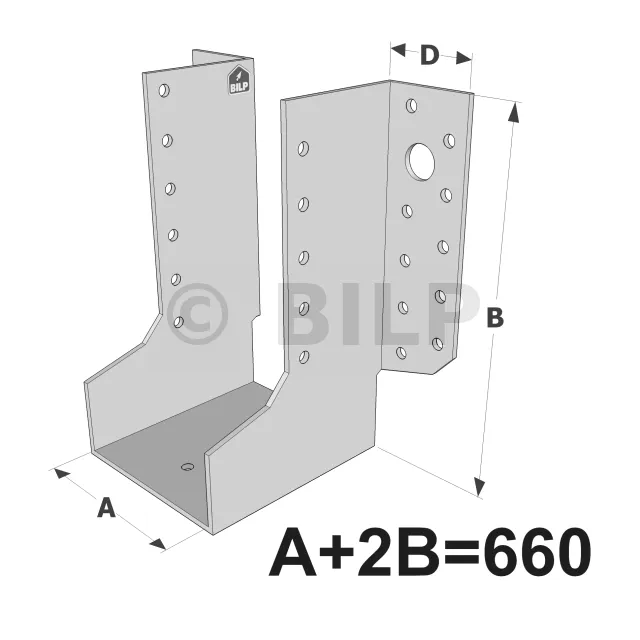 Große Balkenschuhe mit außenliegenden Schenkeln, GLE-Sortiment ECONOMIC (Größe 660mm, Dicke 2.5mm, Tiefe 90mm) - Réf. GLE660/2.5X