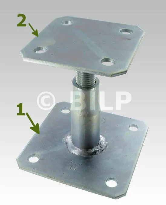 La tête est montée sur une tige filetée, sur le dessous est fixé une tige taraudée ; ce qui permet de faire un réglage en hauteur. Il est même possible de faire un réglable à posteriori. Il faut alors enlever temporairement les fixations, soulever la charge (verrin, pied de biche), ajuster par quelques tours puis reposer la charge.