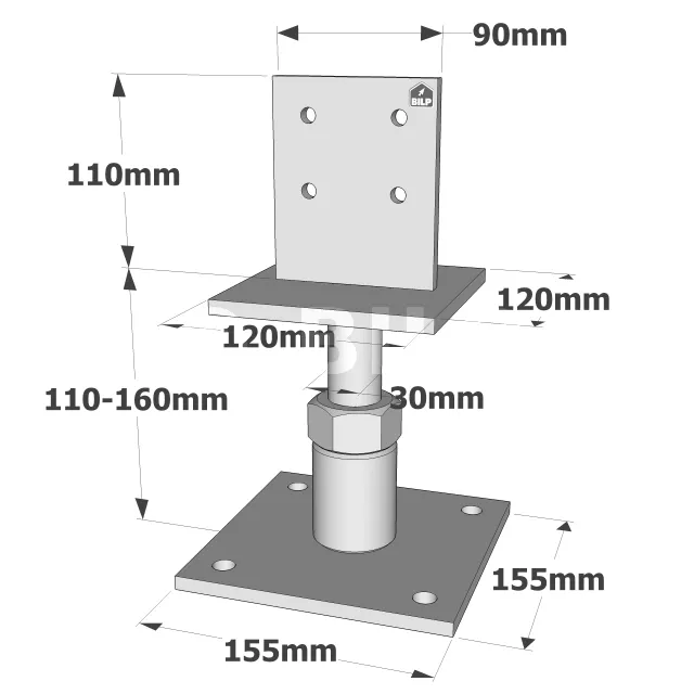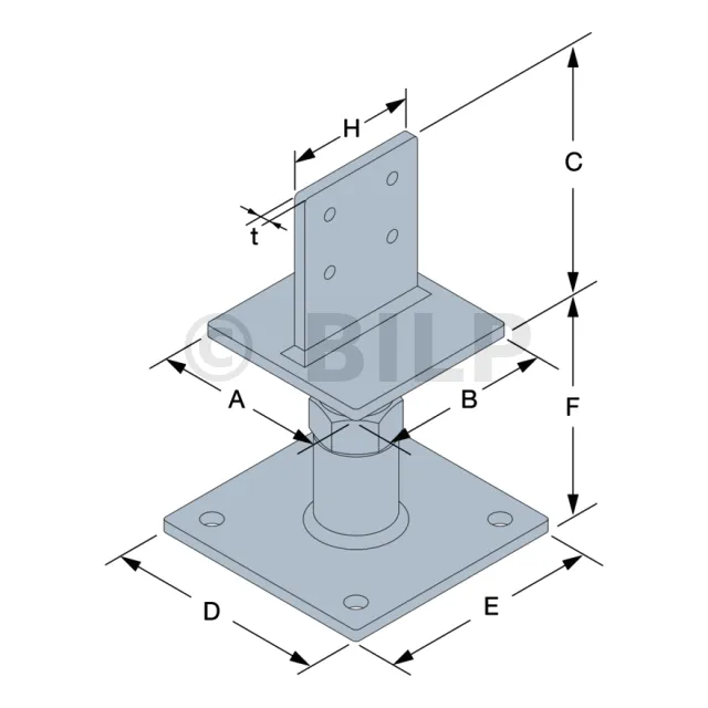 Verstellbarer Rohrpfostenfuß für hohe Belastungen - Réf. PIBA110/160