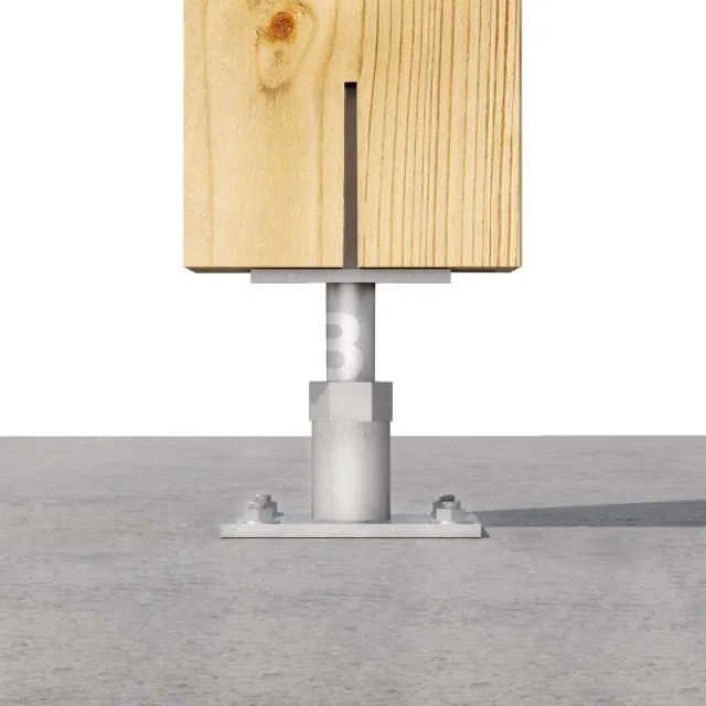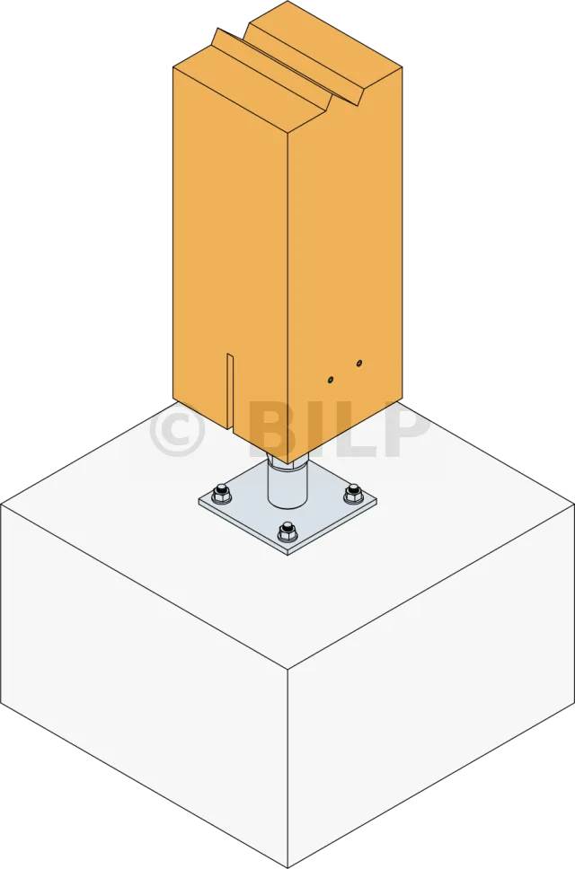 Der Hochlastpfostenträger PIBA110/160 ermöglicht durch seinen vertikalen Kern eine starke Lastrückgewinnung bei Druck sowie eine Rückgewinnung von Hubkräften.