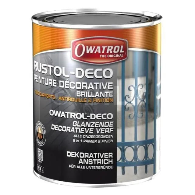RUSTOL-DECO ist ein Rostschutzlack, der in glänzend, matt, seidenmatt und auch in drei Glimmerfarbtönen erhältlich ist. Dieses Produkt gewährleistet einen verstärkten und dekorativen Rostschutz an allen Oberflächen.
