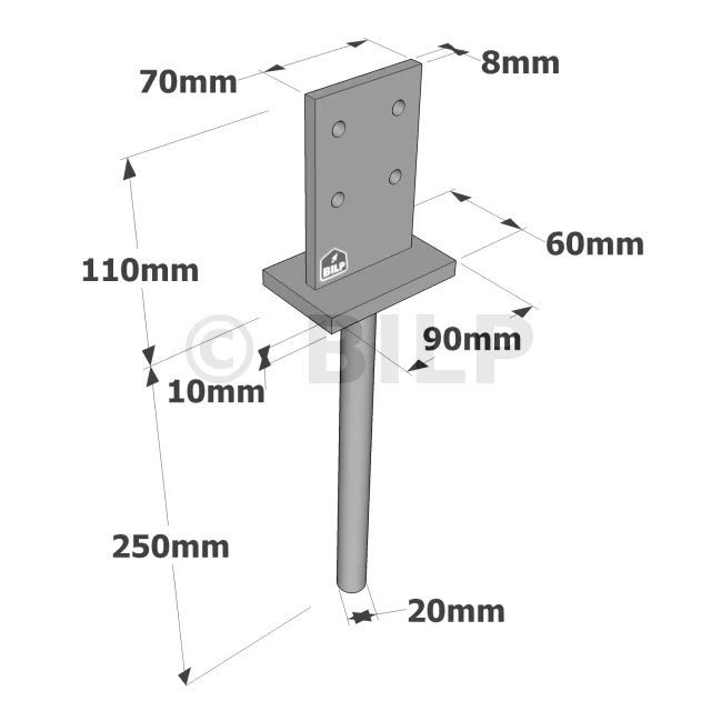 Das PIG wird verwendet, um die Pfosten zu verankern und vor Verrottung zu schützen. Er muss in den Beton eingegossen werden.