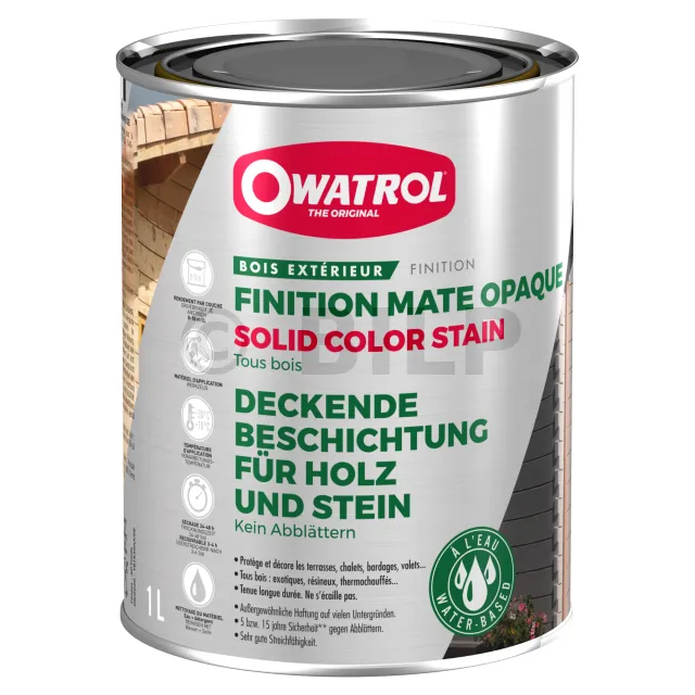 - SOLID COLOR STAIN MAT lässt die Holzmaserung durchscheinen.